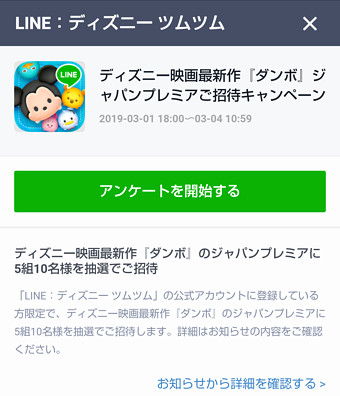 今すぐ応募⇒https://t.co/ySgbVBi7Iv#ツムツム pic.twitter.com/jj1HwmN2yu— LINE:ディズニー ツムツム公式 (@LINE_tsumtsum_j) 2019年3月1日