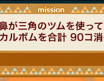 このミッションは、鼻が三角のツムでマジカルボムを合計90個消すとクリアになります。