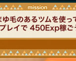 このミッションは、まゆ毛のあるツムで450Exp稼ぐとクリアになります。