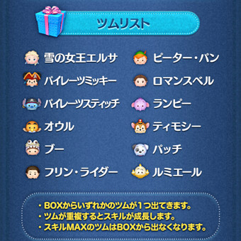 また、その他のラインナップに、オウルやランピーなどイベントで活躍するツムが対象なので今回のセレクトBOXは引くべきだと思います。