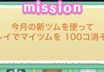 このミッションは、3月の新ツムでマイツムを100個消すとクリアになります。