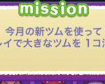 1枚目6個目のミッション「今月の新ツムを使って1プレイで大きなツムを1個消そう」の攻略法です。
