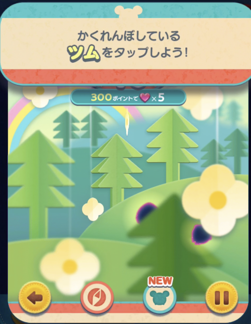 このイベントは、「ツムツムのかくれんぼ」ということで、かくれているツムをタップするとミッションが出されます。