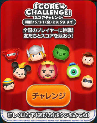 LINEディズニー ツムツム(Tsum Tsum)にてでは2019年5月に「スコアチャレンジ(スコチャレ)」が開催されます。