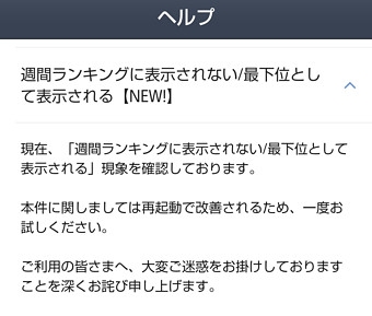 このアップデート以降、ランキングの表示が正常でない不具合が発生しています。