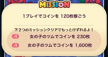 女の子のツムでコイン1600枚、230枚稼ごう概要