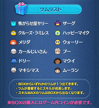 ・BOXからいずれかのツム1体が出てくる
