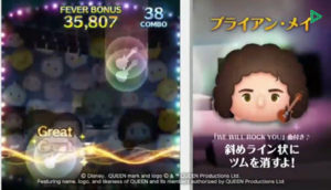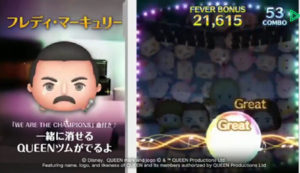 新ツムの紹介後、出演者の西村瑞樹さん(バイきんぐ)の方が、フレディ・マーキュリーを使ってプレイしていました。