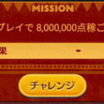 このミッションは、男の子のツムを使って40チェーン以上するとクリアになります。 スフレとサリー、ティモンは大ツム発生系のスキルです。 スパイダーマンは、スキルの重がけをすることでロングチェーンを狙えます。 ↓さらに詳しい攻略情報はこちら! 5枚目(おまけ2)枚目14個目のミッション「1プレイで8,000,000点稼ごう」の攻略法です。