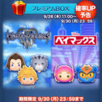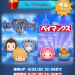 新ツム第1弾:キングダムハーツシリーズ3体 追加&確率アップ | 2019年9月1日0:00〜9月5日10:59まで |