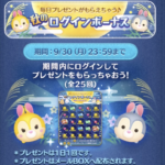 9/30(月) | 23:59 ツムツムスクラッチ終了● 9月の新ツム全5体の確率アップ終了● 秋のログインボーナス終了● |