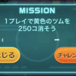このミッションは、黄色いツムを250個消すとクリアになります。