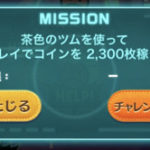 8枚目12個目のミッション「茶色のツムを使って1プレイでコインを2,300枚稼ごう」の攻略法です。