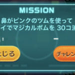 8枚目2個目のミッション「鼻がピンクのツムを使って1プレイでマジカルボムを30個消そう」の攻略法です。