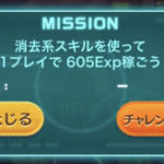 8枚目4個目のミッション「消去系スキルを使って1プレイで605Exp稼ごう」の攻略法です。