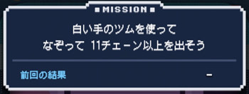 このミッションは、白い手のツムで11チェーン以上するとクリアになります。