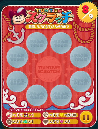 「ツムツムスクラッチ」イベント7枚目・8枚目・9枚目の報酬
