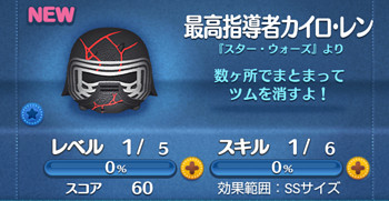 「最高指導者カイロレン」のスキルは、数ヶ所でまとまってツムを消すよ!という消去系スキル。