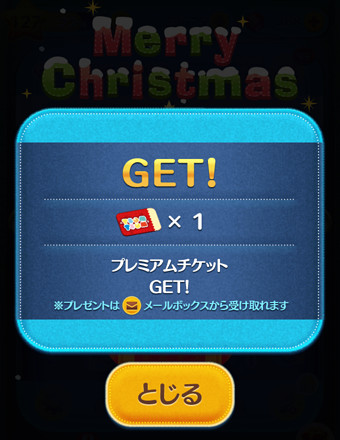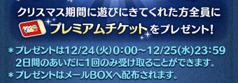 期間中にログインした方全員に、プレミアムチケットが送られるという、クリスマスプレゼント的な内容です。