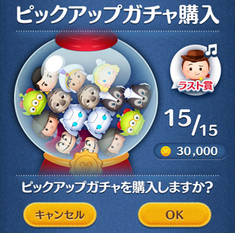今回のピックアップガチャも15体のツムが入っています。そのため・・・