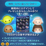 5/31(日) | 23:59 新ツム5体の確率アップ終了● セレクトBOXの2回目終了● スターウォーズイベント終了● ログインボーナス後半終了● スコアチャレンジ終了● |