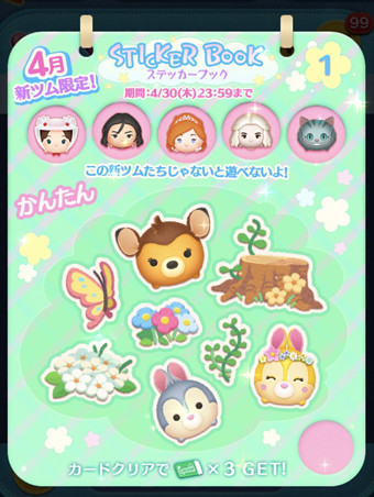 LINEディズニー ツムツム(Tsum Tsum)では、2020年4月24日11:00〜4月新ツム限定イベント「ステッカーブック(Sticker Book)」が開催されています。