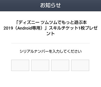 ディズニーツムツムでもっと遊ぶ本2020を購入すると、スキルチケットのシリアルコードの中に受取方法が記載されています。