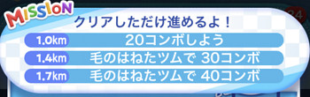 このミッションは、毛のはねたツムで40コンボ、30コンボ稼ぐとより多くの距離を進むことができます。