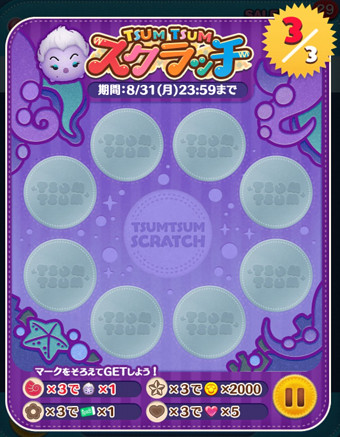 ★3=1プレイでスキルを6回使おう8月「ツムツムスクラッチ」イベント攻略関連