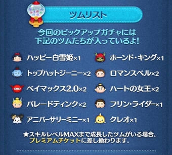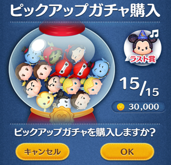 今回のピックアップガチャも15体のツムが入っています。そのため・・・
