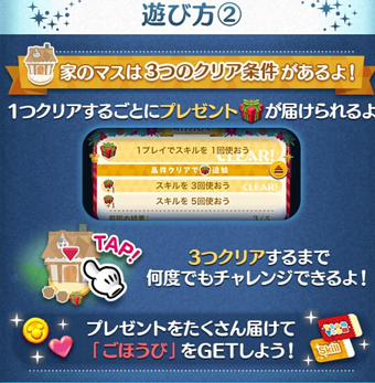 1個クリアすると、プレゼントを届けることができて、プレゼントに応じて報酬がもらえます。