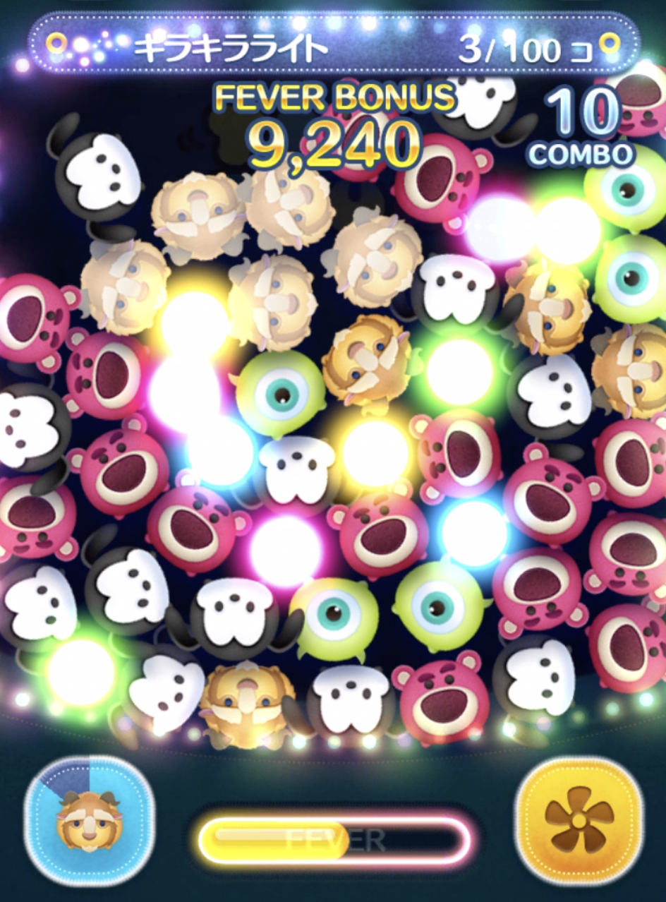 ただし、フィーバー中にしかキラキラライトは発生しません。そのため、フィーバー発生系ツムを使っての攻略しましょう。