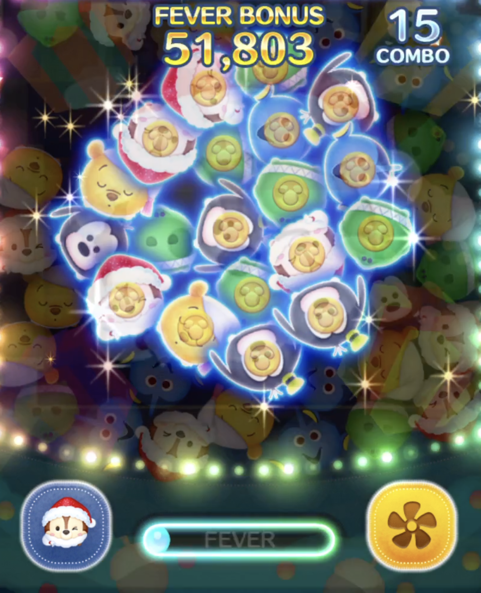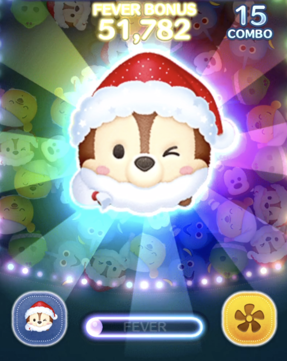 サンタチップは、フィーバー発生系&画面中央のツムをまとめて消す消去系。