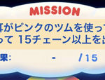 このミッションは、耳がピンクのツムを使って15チェーンつなげればクリアです。