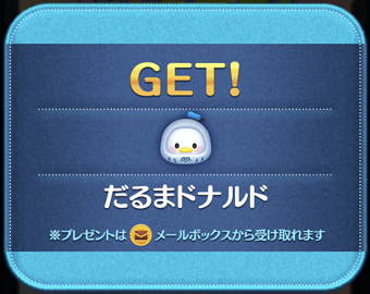イベントガチャで入手しただるまドナルドはメールBOXには送られず、そのままツムのスキルレベルアップに反映されます。