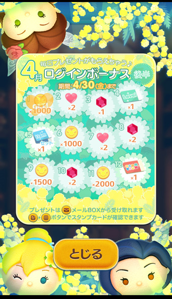 LINEディズニー ツムツム(Tsum Tsum)では、2021年4月16日より「ログインボーナス後半」が開催されます。