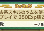 フィーバー発生系スキルを持つツムを使えば指定回数分スキルを発動すればクリアです。 それ以外は消去威力が高いツムを使うのがおすすめ。その場合はフィーバー中にスキルゲージやボムをためておき、通常時にスキルやボムを使うようにしましょう。 3枚目19個目のミッション「消去系スキルのツムを使って1プレイで350Exp稼ごう」の攻略法です。
