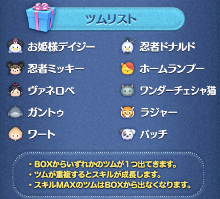 これにより、セレクトBOXのツムの確率も表示されることになります。