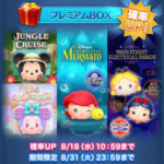 8/1(日) | 0:00~ ●新ツム第1弾:ペアツム&プリンセス系シリーズ3体追加&確率アップ ●BOXボーナス |