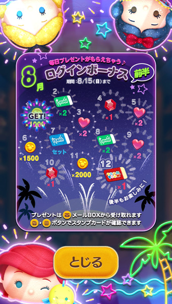 LINEディズニー ツムツム(Tsum Tsum)では、2021年8月1日より「ログインボーナス前半」が開催されます。