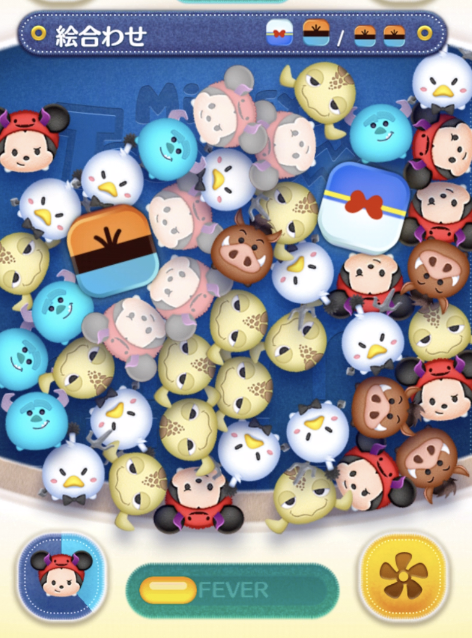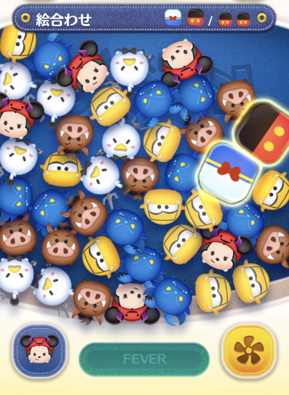 今回はミッキーのブロックを2個にすればいいので、ドナルドのブロックに1回スキルかボムを当てるとクリアできます。1-5:1プレイで2回フィーバーしよう