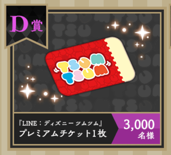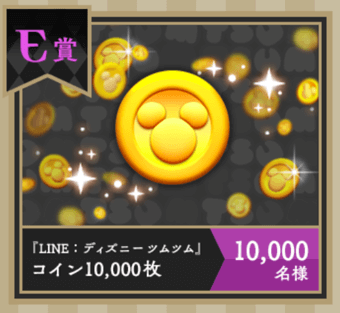 E賞は、ディズニーツムツムのアプリ内で使えるコイン10,000枚がもらえます。