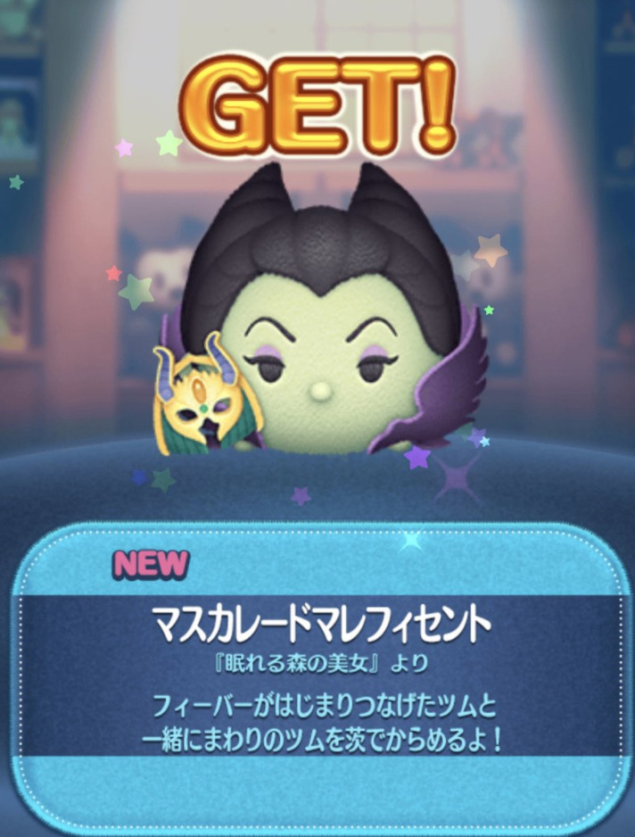 「マスカレードマレフィセント」は、プレミアムBOXから低確率で出現する期間限定ツムです。