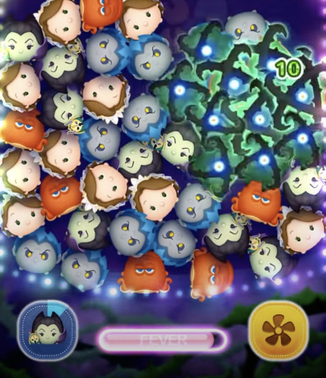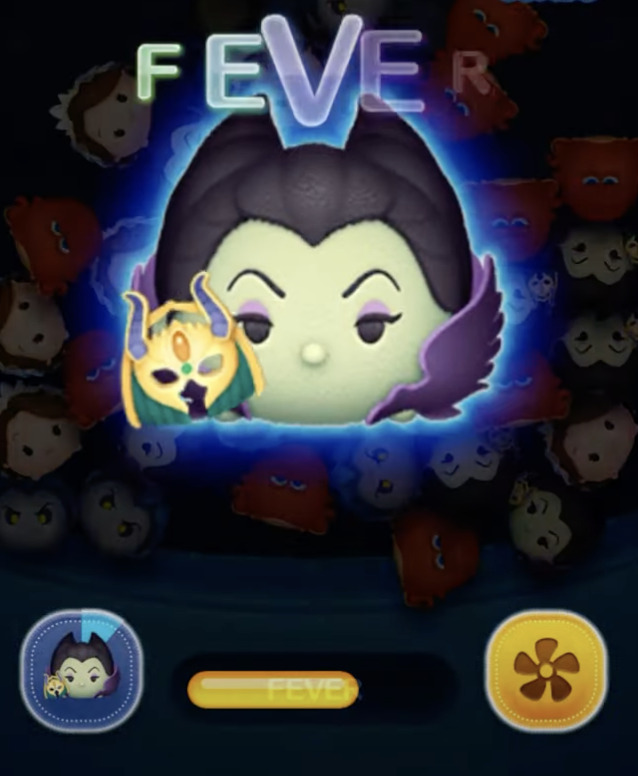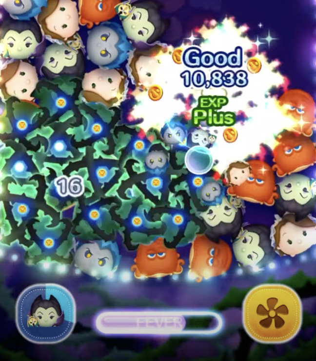 マスカレードマレフィセントは、フィーバーがはじまりつなげたツムと一緒に周りのツムを茨でからめるよ!というフィーバー発生系&特殊系。