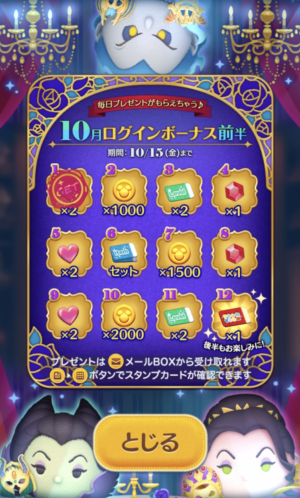 【ツムツム】2021年10月ログインボーナス前半報酬まとめ
