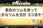 ツム指定はないので、普段コイン稼ぎに使っているツムを使って攻略していきましょう。3-2:黒色のツムを使って大きなツムを合計3個消そう