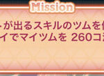 合計数のミッションなので、使いやすいツムで攻略していきましょう。5-19:ハートが出るスキルのツムを使って1プレイでマイツムを260個消そう