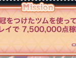 全体的に難易度は上がっていますので、アイテムを使いながら攻略していきましょう。特に冠をかぶったツムで750万点はかなり難しいです。