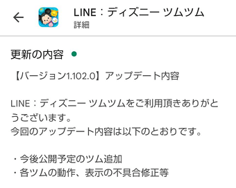 バージョン1.102.0のアップデートあり