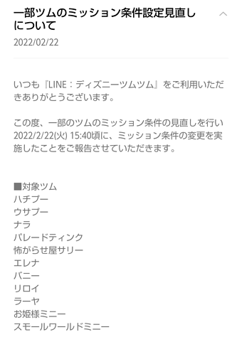 2022年2月22日、一部ツムのミッション条件の見直しがあったようです。